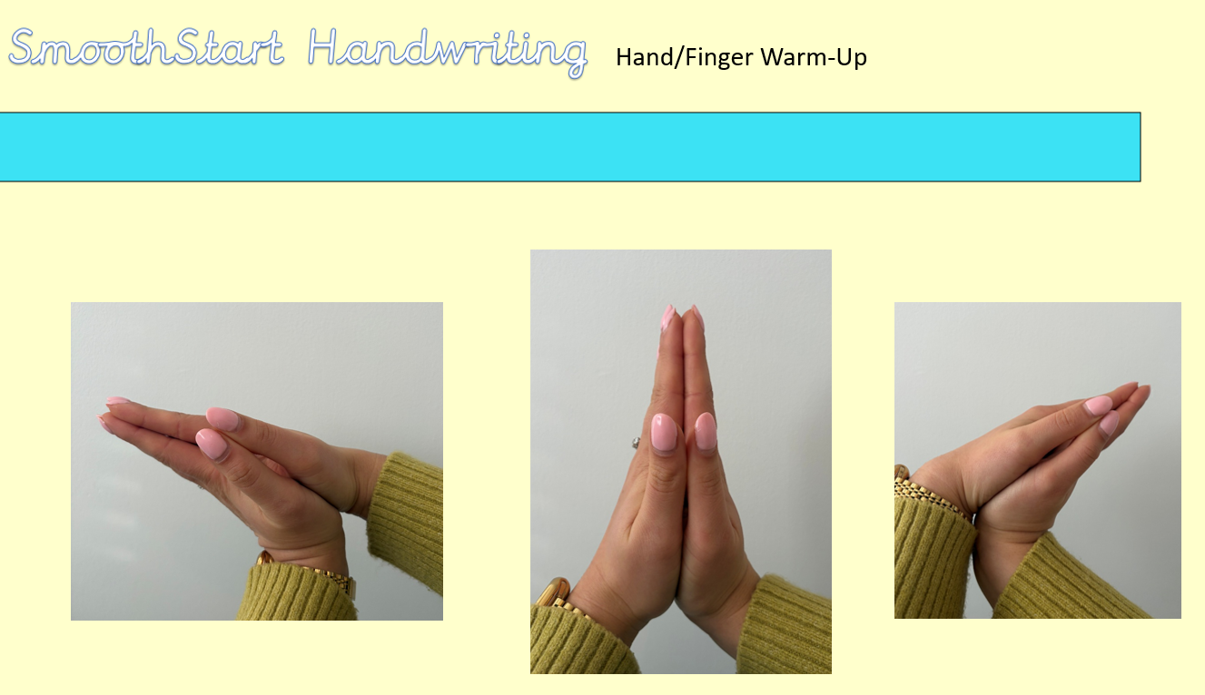 We recommend all year groups modelling and completing around 5 hand/finger warm-ups to improve fine motor skills and set high expectations.